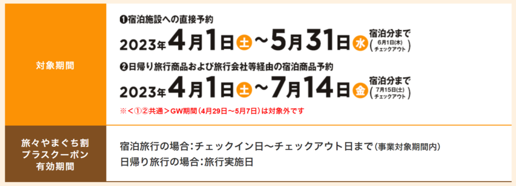 【①宿泊施設への直接予約】 2023年4月1日から5月31日まで