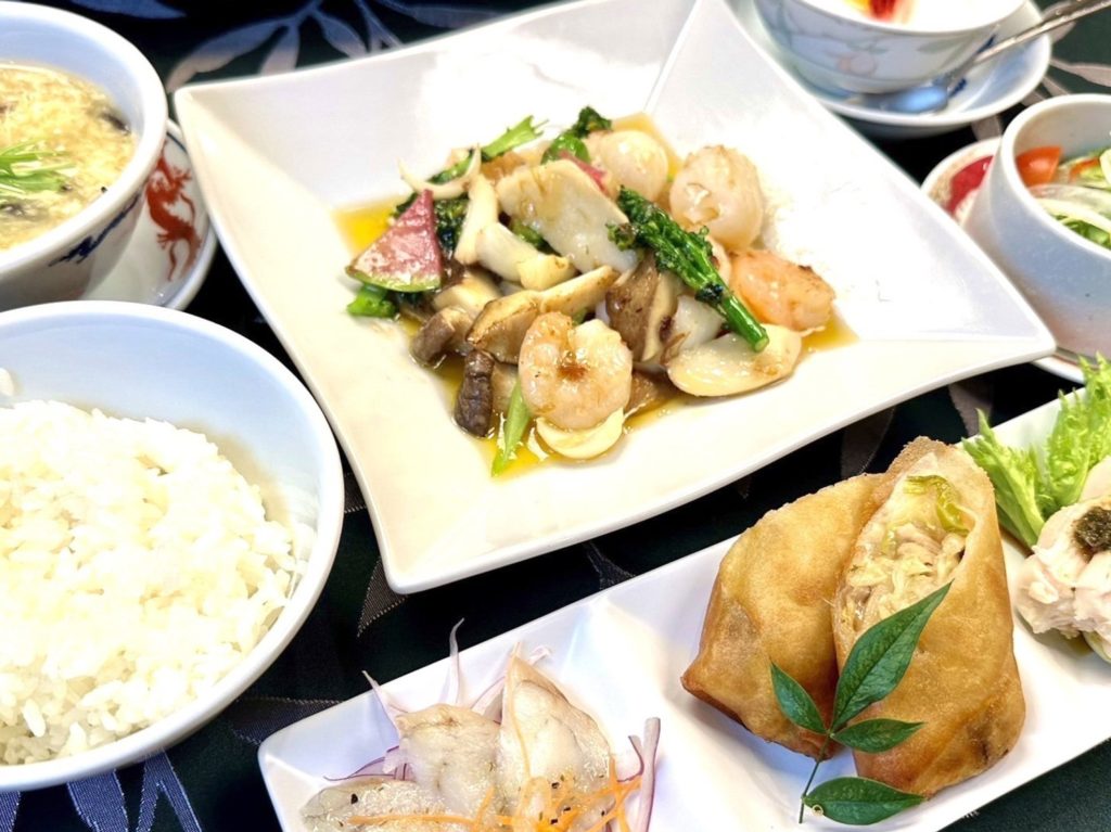 ①四川麻婆豆腐 ②エビチリ ③白身魚の甘酢ソースかけ