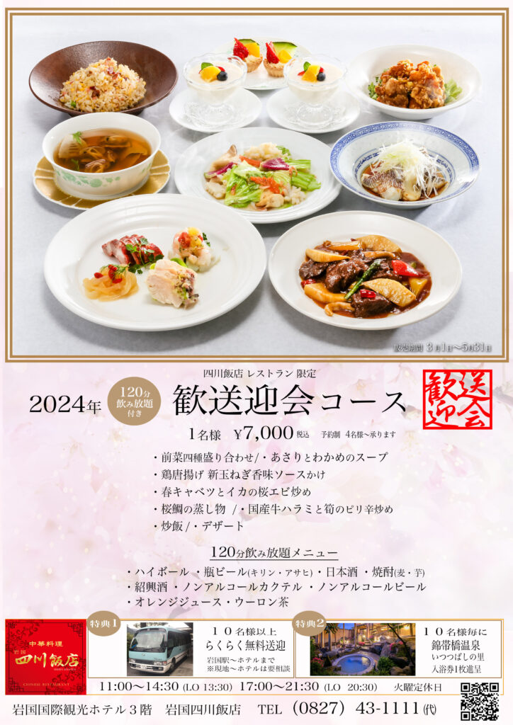 2024年 四川飯店 歓送迎会コース(2時間飲み放題付き)のお知らせです!