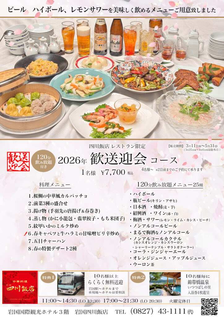 【岩国四川飯店】2026年 歓送迎会コースのお知らせ
